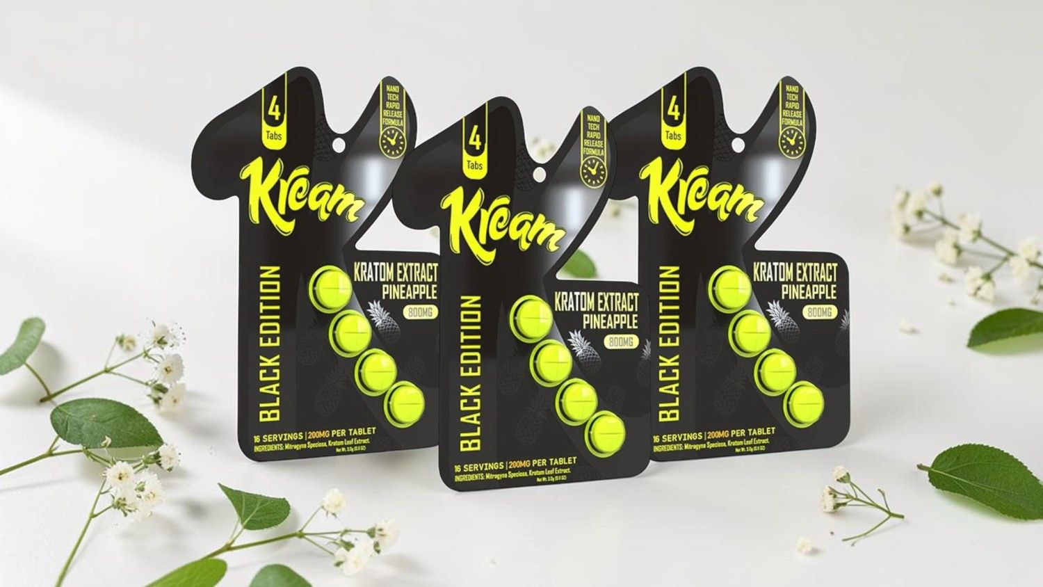 Experience a bold and modern approach to kratom extracts with Kream Black Edition Next Gen Kratom Extract Pineapple Chewable Tablets 200mg. Designed for convenience, consistency, and premium quality, these chewable tablets offer a streamlined alternative to traditional kratom powders—no measuring, mixing, or preparation required.